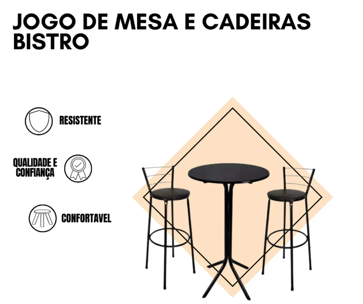 Nosso kit de mesa e cadeiras bristo oferecem conforto e estilo para qualquer ambiente. Fabricados com materiais de alta qualidade, garantem durabilidade e resistência. O design moderno e compacto é perfeito para otimizar espaços, enquanto o acabamento impecável adiciona um toque de elegância à sua varanda, jardim ou área de lazer.