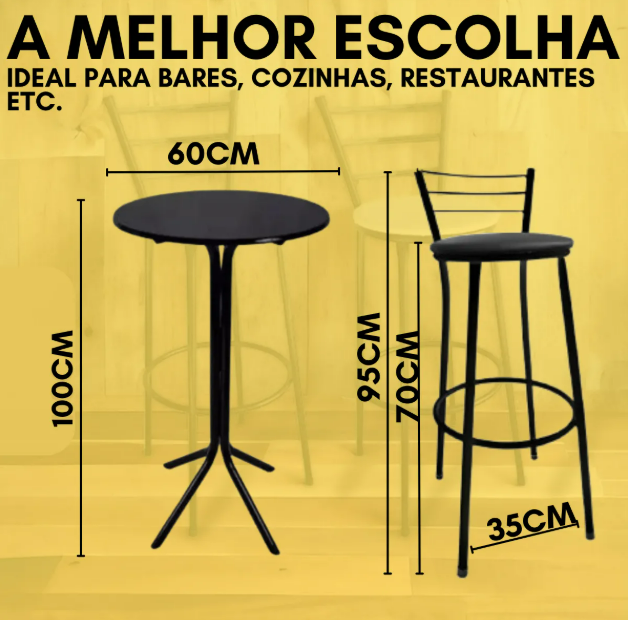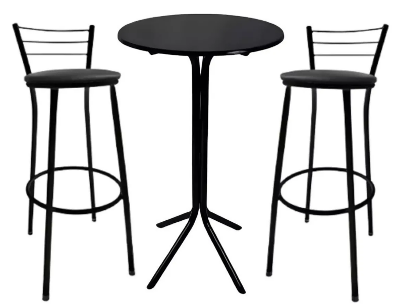 Kit 2 Bancos E Mesa Alta Preta Bistro
